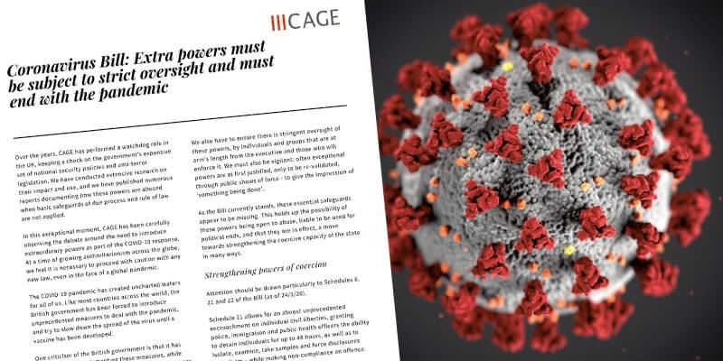 This briefing paper outlines how the government’s proposed CV Bill will give the state far-reaching powers to dismantle the fundamental rights of individuals and communities. While decisive action is essential to tackle the coronavirus outbreak, such an approach means that the Bill also poses a long term threat to the social fabric of the UK. Extra powers must be subject to strict and effective oversight and must end within a reasonable time around the end of the pandemic. CAGE raises the following concerns about the Bill: