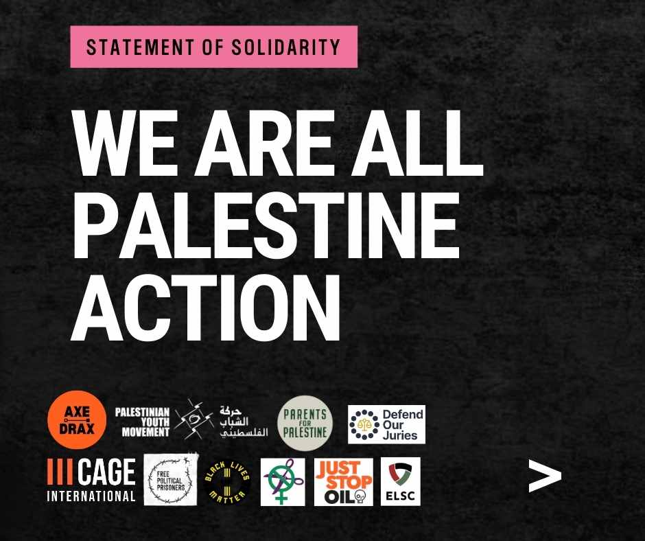 We stand in full solidarity with Palestine Action and call on all people of conscience to show their support for the group. We are all Palestine Action.